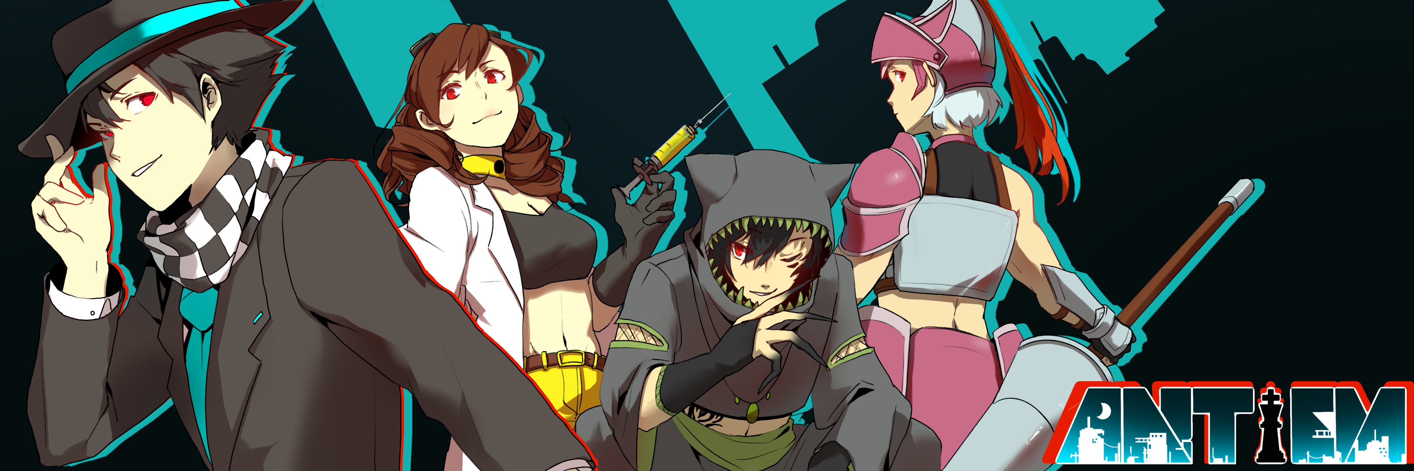 Antiem is a PC RPG about the sleepy town of Antiem, in Kansas. However, this seemingly-docile town contains a mysterious, shadowy, other world. A world where one's self-perception is made manifest in the form of monstrous beasts called Egos, and one's appearance changes to be that of the person they've always wanted to be. Naturally, the untapped potential of this world is limitless—as is the danger.