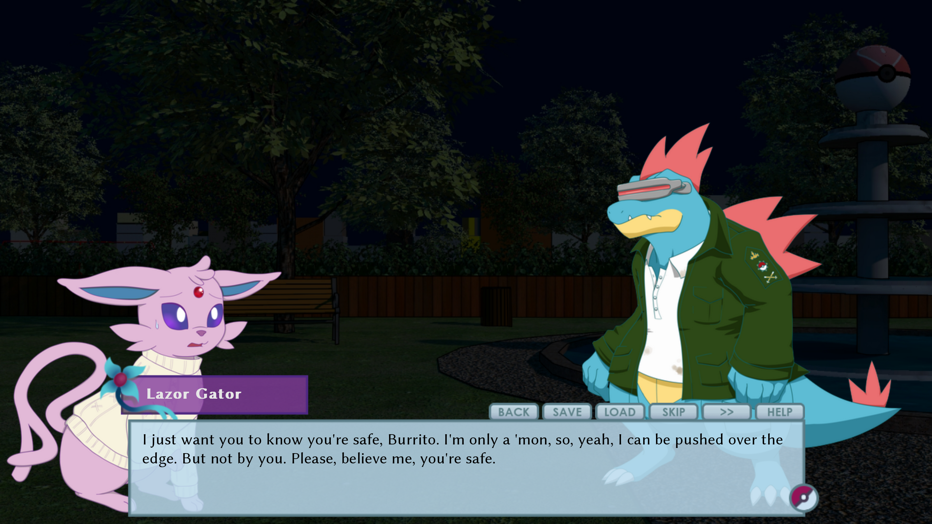 Take up the role of Burrito, an Espeon and transfer student to Twitch Academy, as you navigate your way through the tangled social webs, mysteries, and secrets that this game's cast of colorful characters weave around you.
